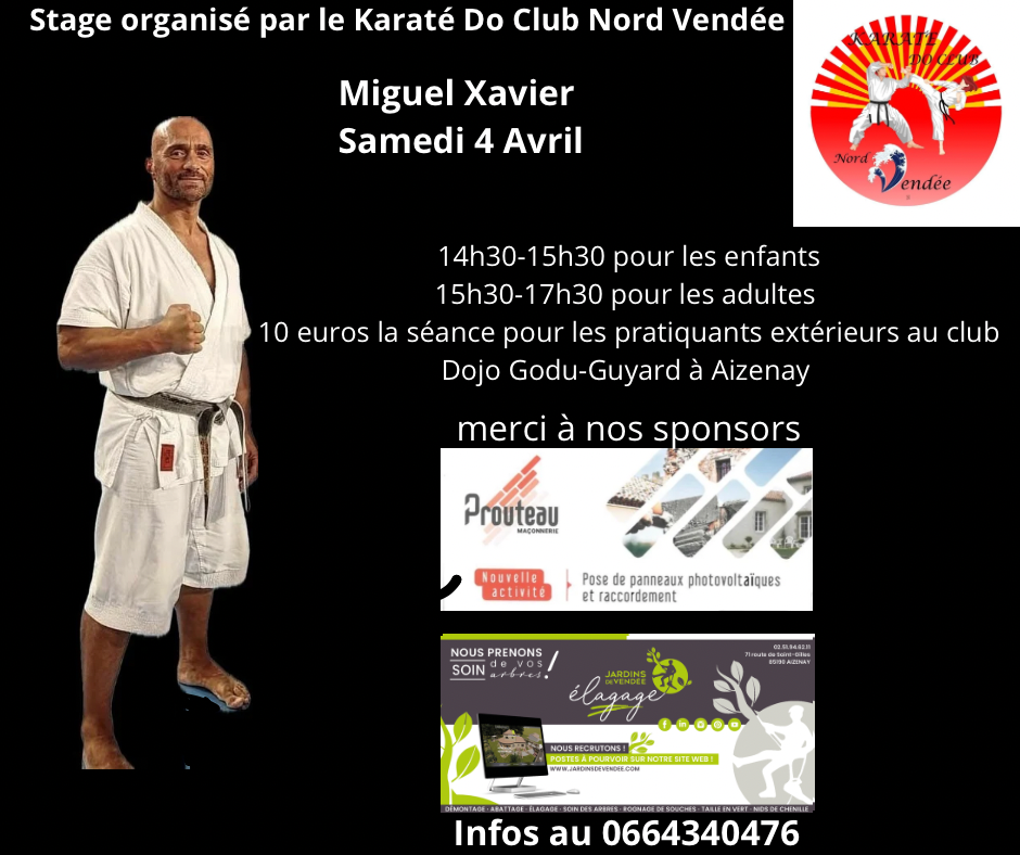 - Le 4 avril 2026, le club organisera également un stage animé par Xavier Miguel, ouvert à tous ceux qui souhaitent approfondir leur pratique et partager un moment fort autour du karaté. (lien ici)